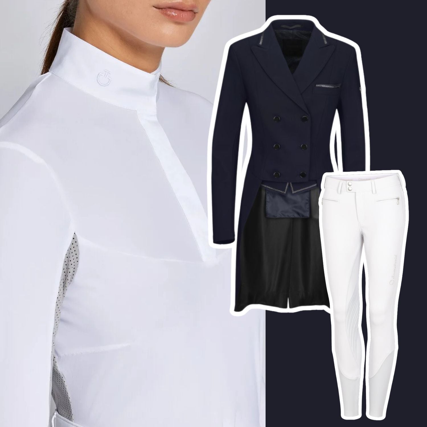 Ride in Style with our curated selection of breeches, riding shirts, show coats & accessories.